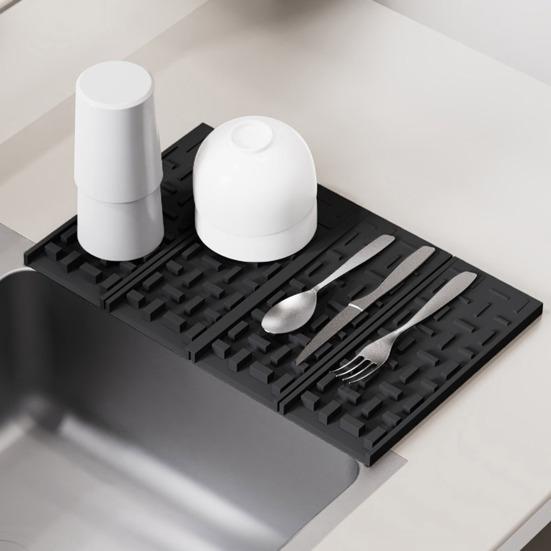 Anti-Slip Base for Stability: Equipped with a non-slip base, the mat stays firmly in place on countertops or sinks even when wet. This stability prevents accidental slips or movement while placing or removing items, enhancing safety and convenience during kitchen routines. The secure grip ensures reliable performance under various conditions.