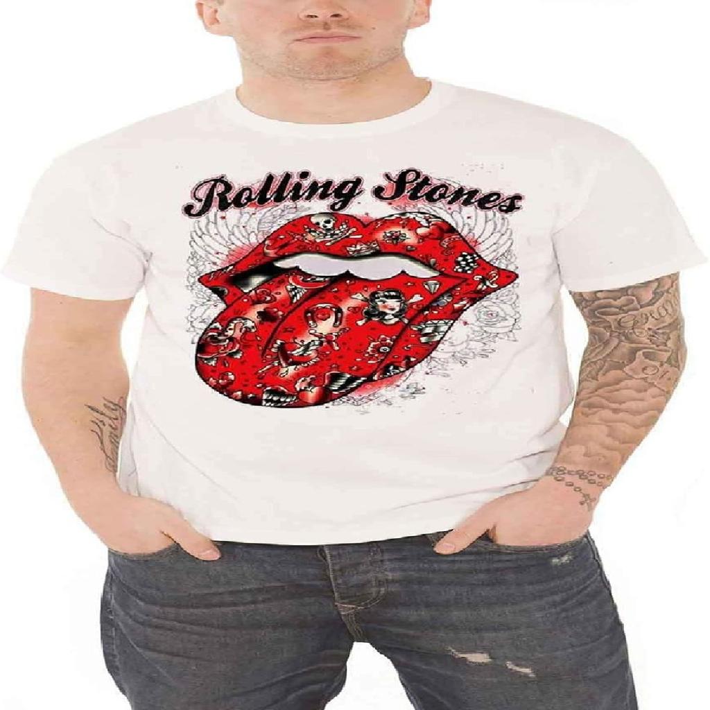 The Rolling Stones T Shirt Tattoo Flash Tongue Band Logo Official Mens New White Size XL