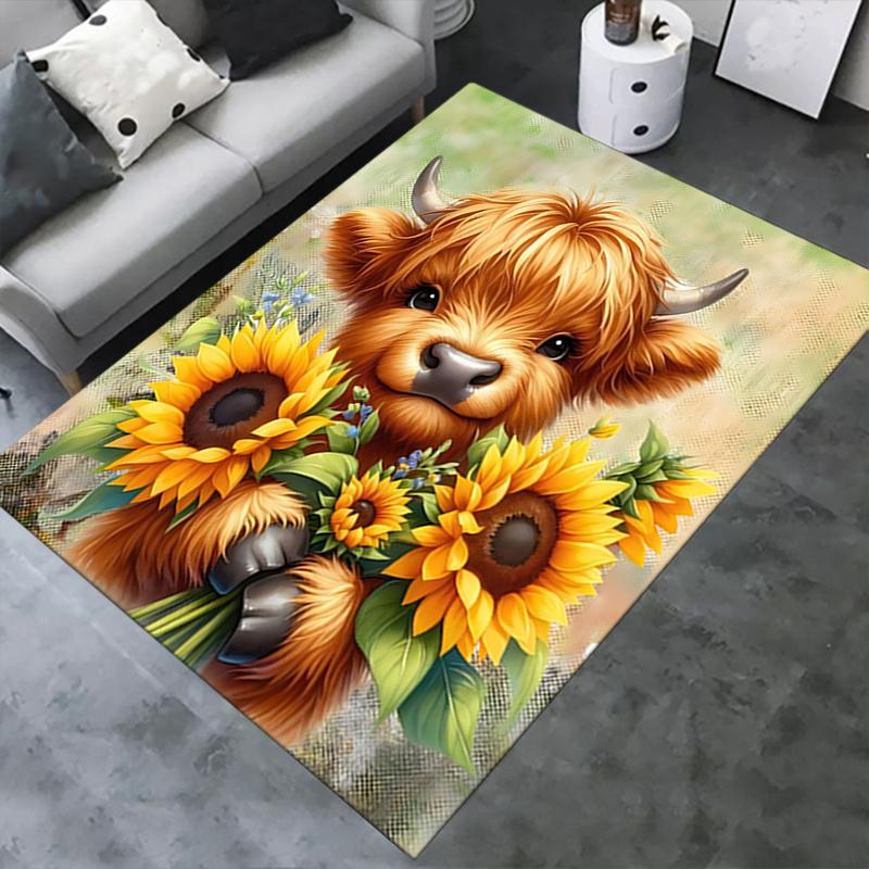Highland Bull Theme Sunflower Chair Mat Office Carpet, Large Rug for Home Decor, Desk Pad Gift, Suitable for Bedroom, Living Room, Various Rooms