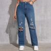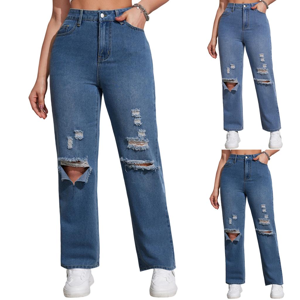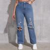 Women's High Waist Washed Women's Jeans Fashionable Versatile Straight Leg Pants