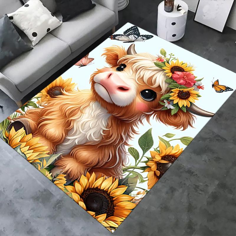 Floral Chair Mat: Office Carpet with Sunflowers and Butterflies Large Rug for Home Decor, Sofa Cover, Gift Idea for Any Room
