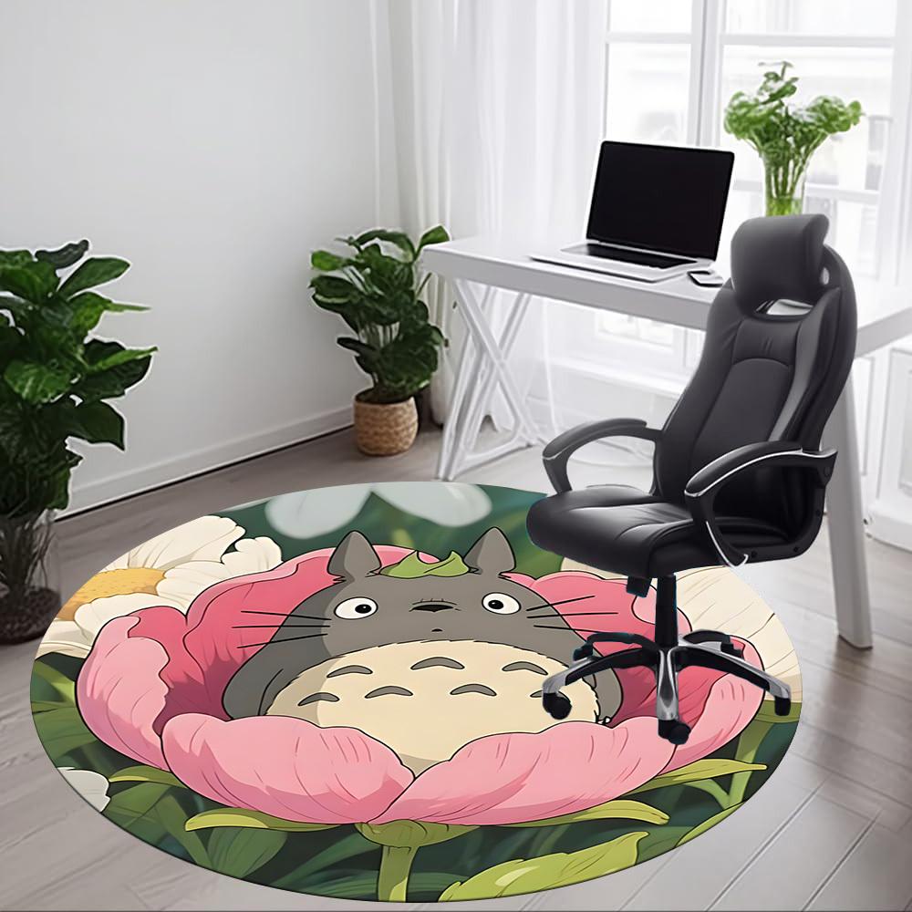 1pc Flower Totoro Office Round Area Rug, Under Office Chairs Bedroom Living Room Home Decor a1022303