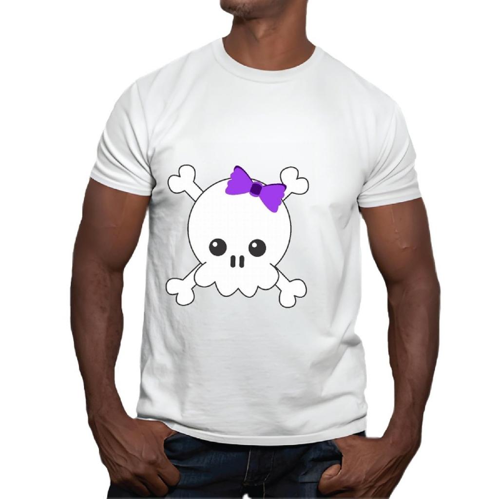 Unique Gift for Goth Punk Girls Skull with Bow and Crossbones Men Women Gray Multicolor T shirt