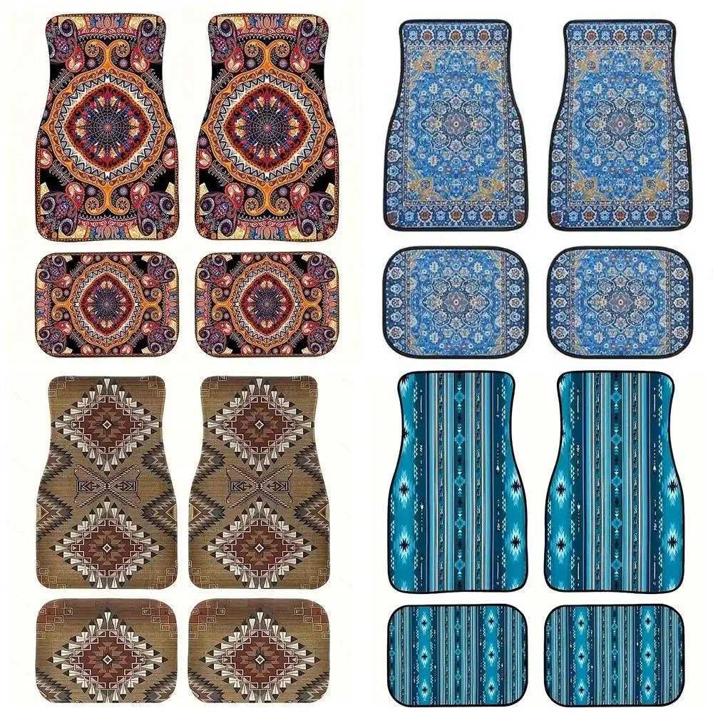 Retro 4Pcs Bohemian Car Floor Mats Heavy Duty Dirty Resistant Persian Carpet Anti-slip Car Floor Protector Rugs