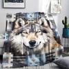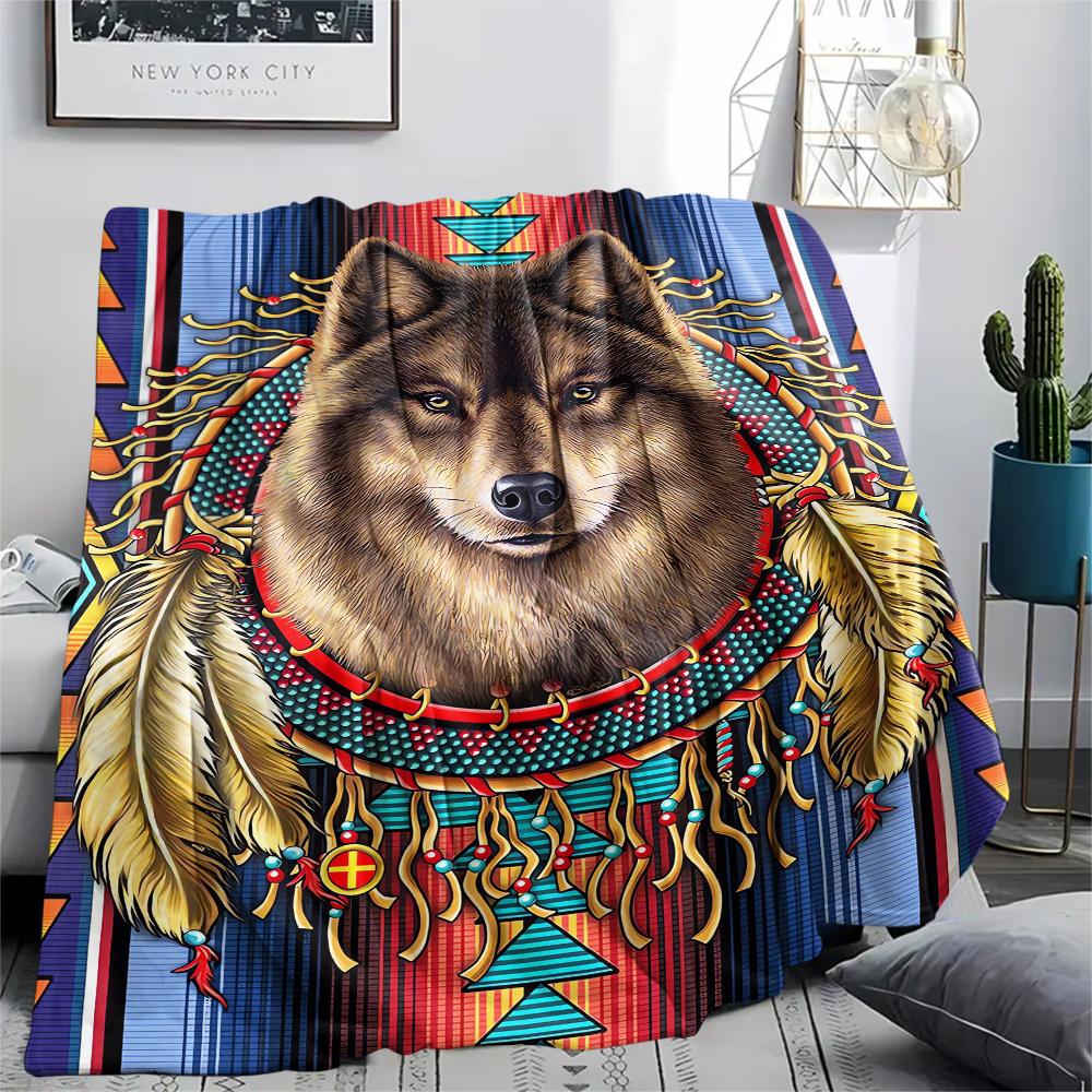 1Pc Natvie Wolf Print Flannel Blanket, High quality Comfortable for All Seasons, Home Decor, Warmth and Comfort, Perfect for Christmas Gifts