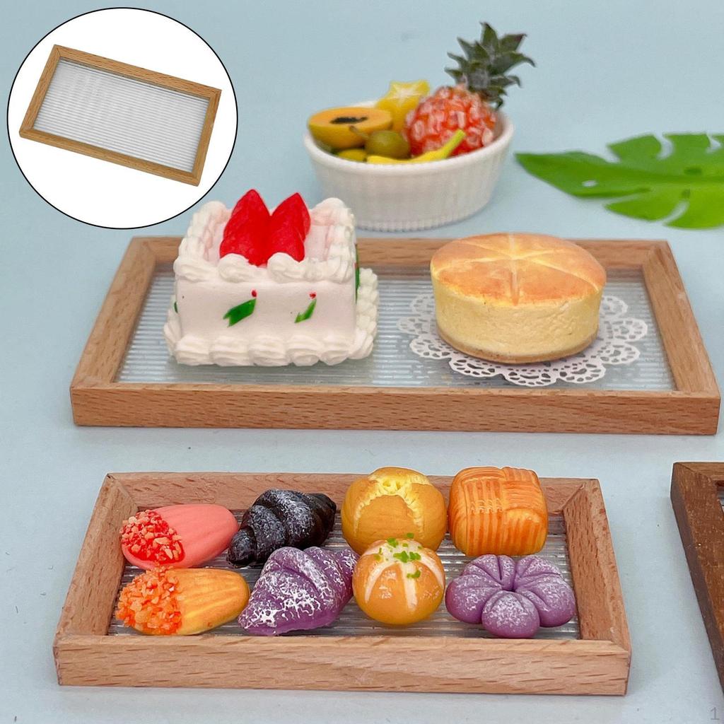 Dollhouse Miniature Acrylic Tray Wooden Board Mini Dessert Bread Cake for Gift