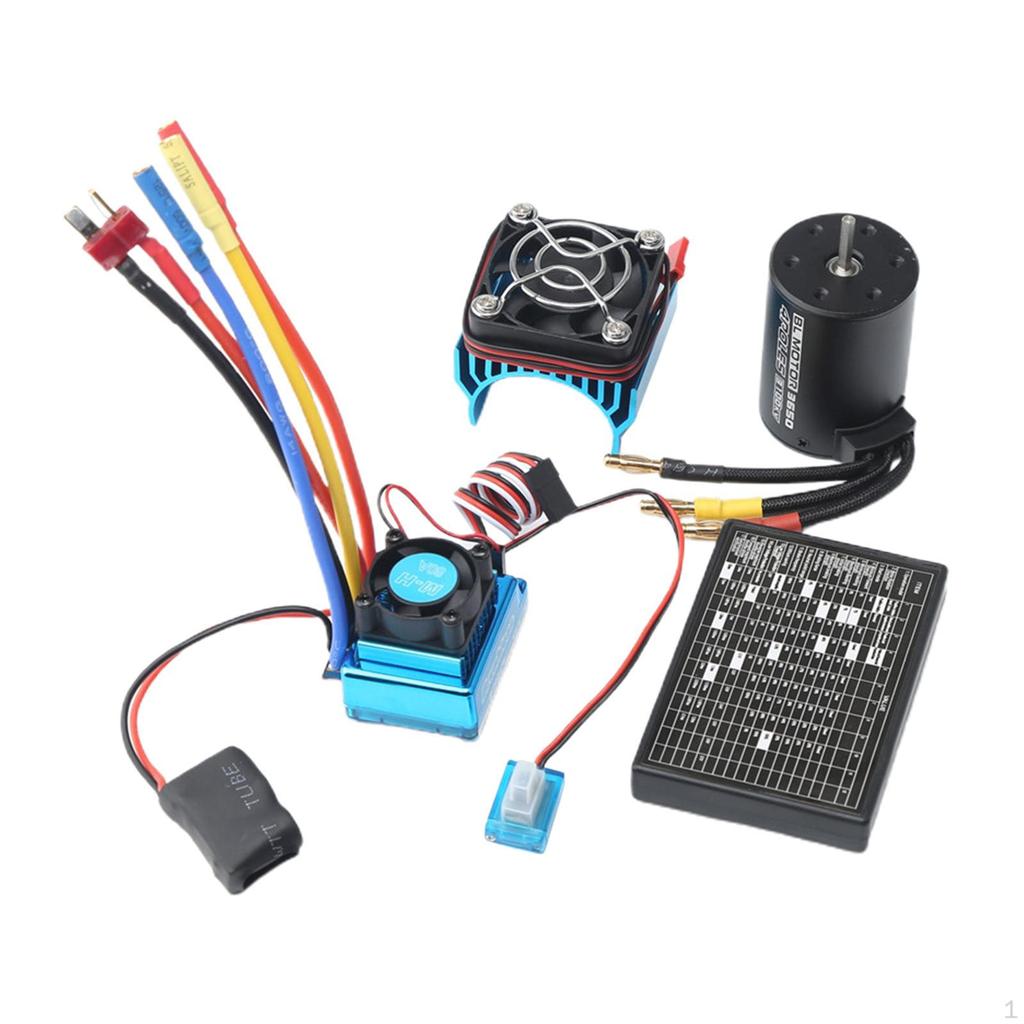 - 3650 3100KV Brushless Motor with ESC & radiator with Program Car Combo for 1:8/1:10 RC Car RC Boat Part.