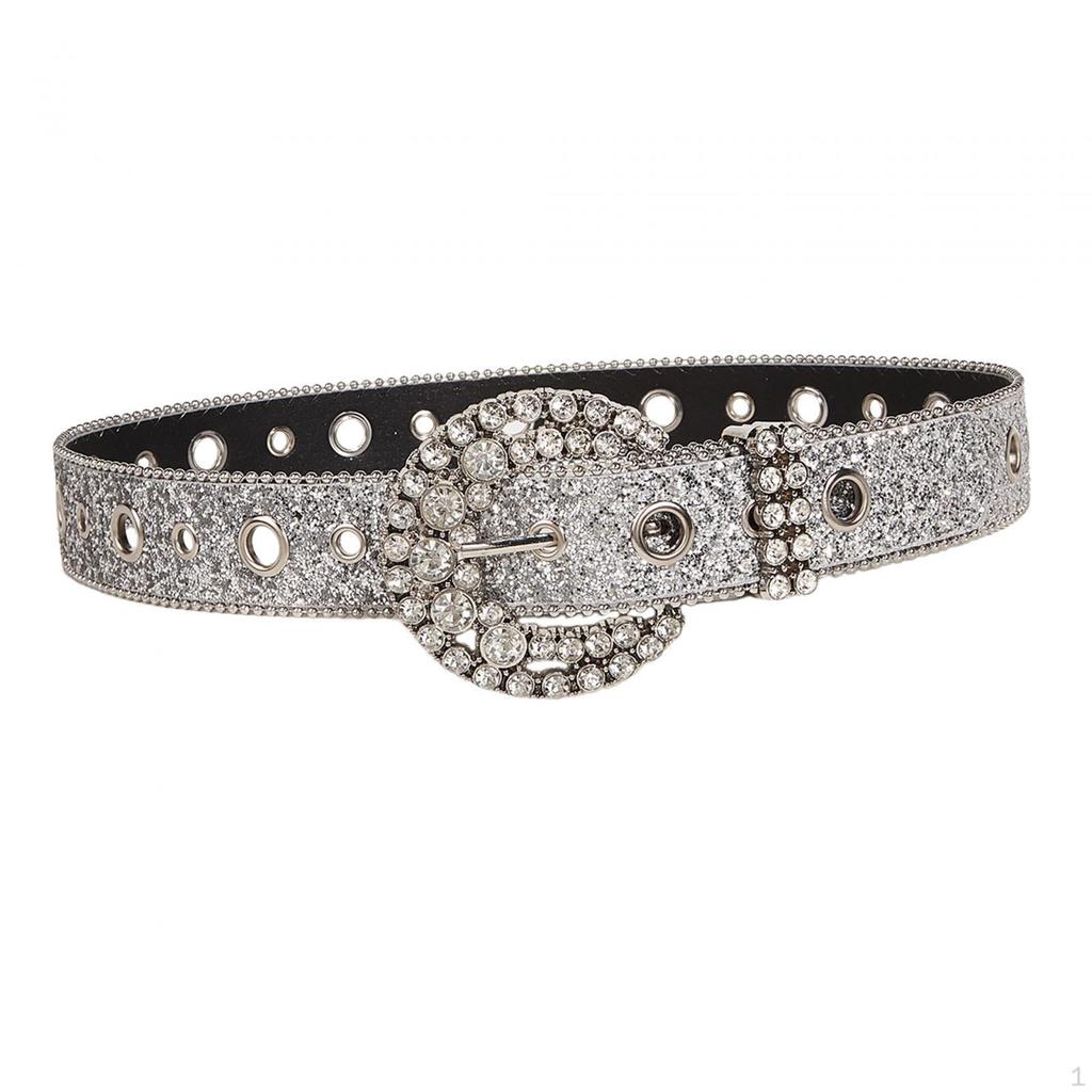 - 【PU Leather Belt】: Modern PU Leather Waist Belt with metal buckle and rhinestone, sequins decoration, fashion,and glitter.