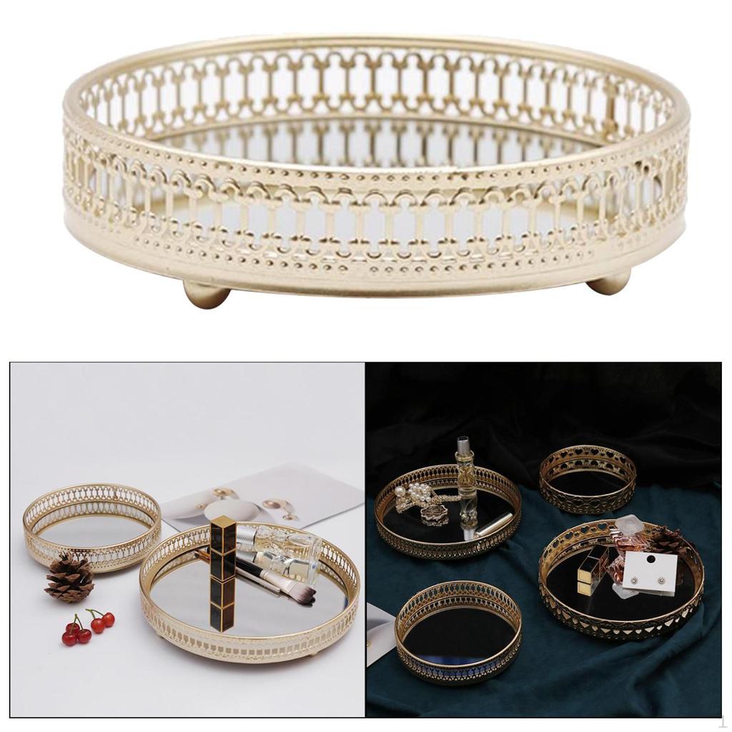 gold Mirror Jewelry Tray Display Stand Decorative Round Holder Plate for Bathroom