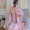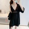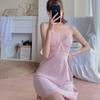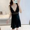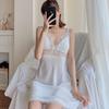 Pajamas women's spring and summer ice silk thin suspender medium and long nightdress sexy lace nightgown loungewear set
