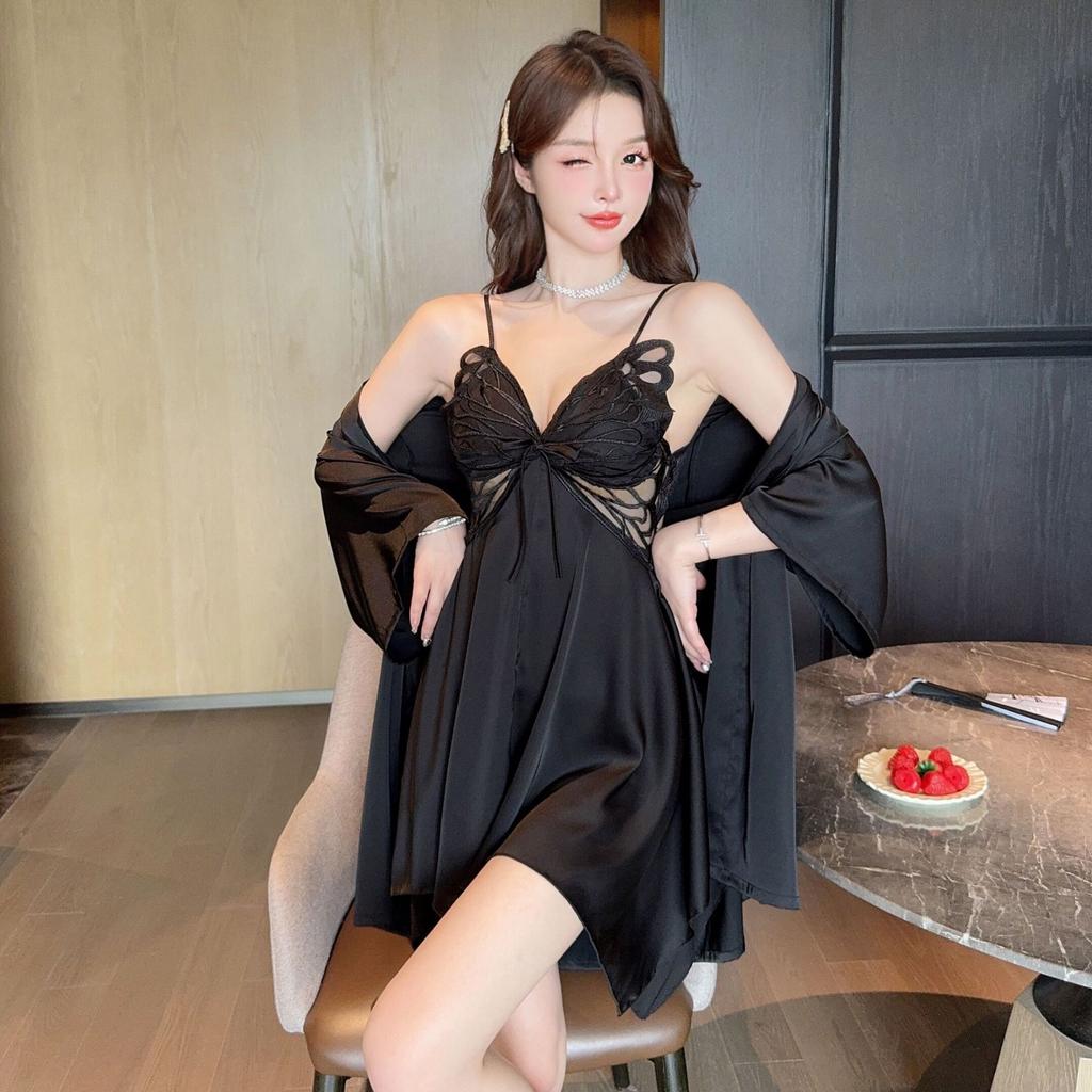 Sexy pajamas women's ice silk butterfly with chest pad suspender nightgown nightgown pure desire style new silk loungewear