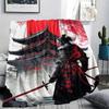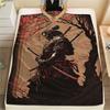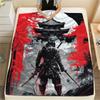 1Pc Japanese Samurai Print Flannel Blanket, High quality Comfortable for All Seasons, Home Decor, Warmth and Comfort, Perfect for Christmas Gifts
