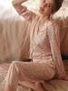 Spring and Autumn new leopard print pajamas women's ice silk thin long-sleeved small lapel Korean version can be worn outside loungewear suit
