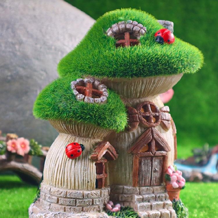 Fairies Tale Landscape Ornament Solar Lighted Illuminated Mushroom House Resin Statue Suitable For Outdoor Night Display