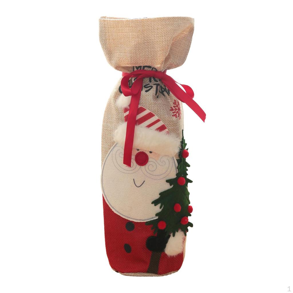 Christmas Bottle Bags Burlap Sack Drawstring Reusable for Holiday Xmas
