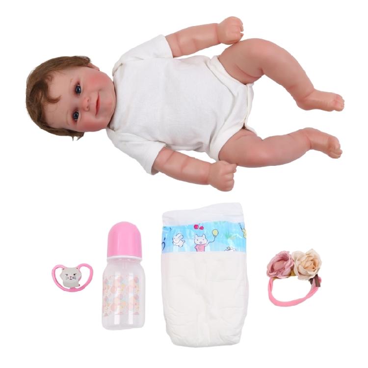 Simulation Reborn-Doll: for Doll measures approx. 50cm/19.86 inch, with a soft body and a real for touch feeling, opened eyes with smile face, vibrant lifelike toy, well stimulate baby to for touch and interact for play with a real baby.