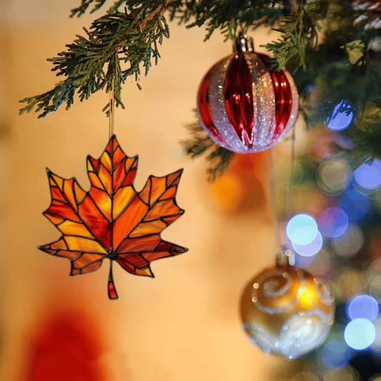 Bu vitray pencere askısıyla göz kamaştırıcı bir yansıma ve sıcak bir atmosfer yaratın. Işığın içinden geçmesine izin vermek için güneşli pencerelerin yakınına yerleştirin, mekanınızı sonbahar yaprakları ve akçaağaç yaprağı şeklinde kolyelerle dönüştürün.