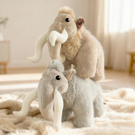 Realistic Mammoth Shape: Designed with attention to detail, the soft mammoth plush replicates the iconic long curved teeth and downy fur of a prehistoric mammoth. This vivid and charming "prehistoric cute creature" design adds a unique character that stands out as both playful and recognizable, appealing to collectors and animal lovers alike.
