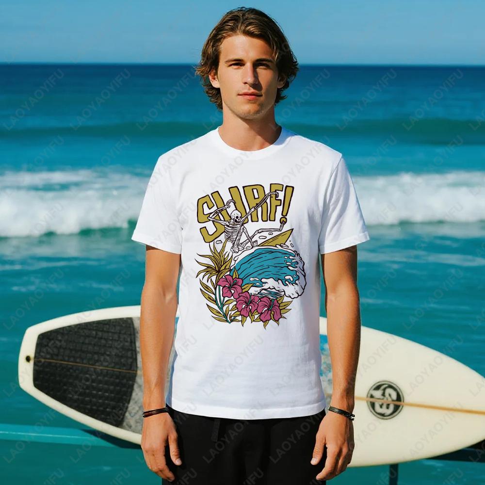 Skeleton Surfer Graphic T Shirts Summer Woman Man Surfing Enthusiast High Quality Cotton Tshirt Classic Oneck Outdoors Shirt