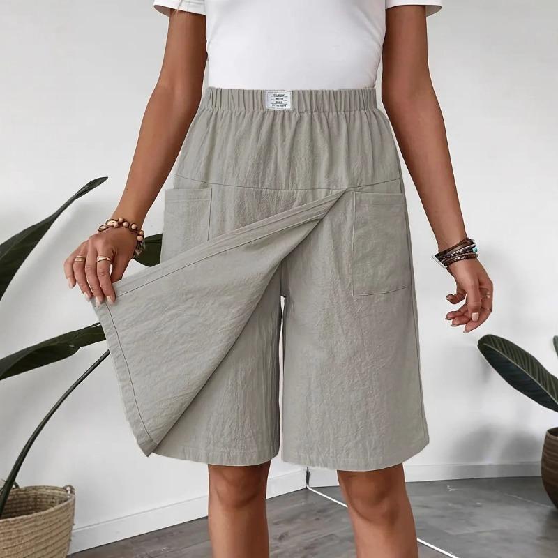 Summer Women's Pockets Casual Shorts Skirts Fashion Loose Shorts Casual Simple Solid Color Straight Leg Short Pants Vintage Simple Short Trousers