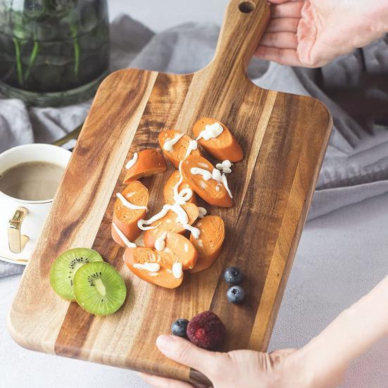 Stylish Rustic Aesthetic: The natural acacia wood finish complements a wide range of kitchen decors—from farmhouse to contemporary styles. This board not only serves functional purposes but also acts as a charming centerpiece for cafes, restaurants, bakeries, or home kitchens seeking both utility and visual warmth.