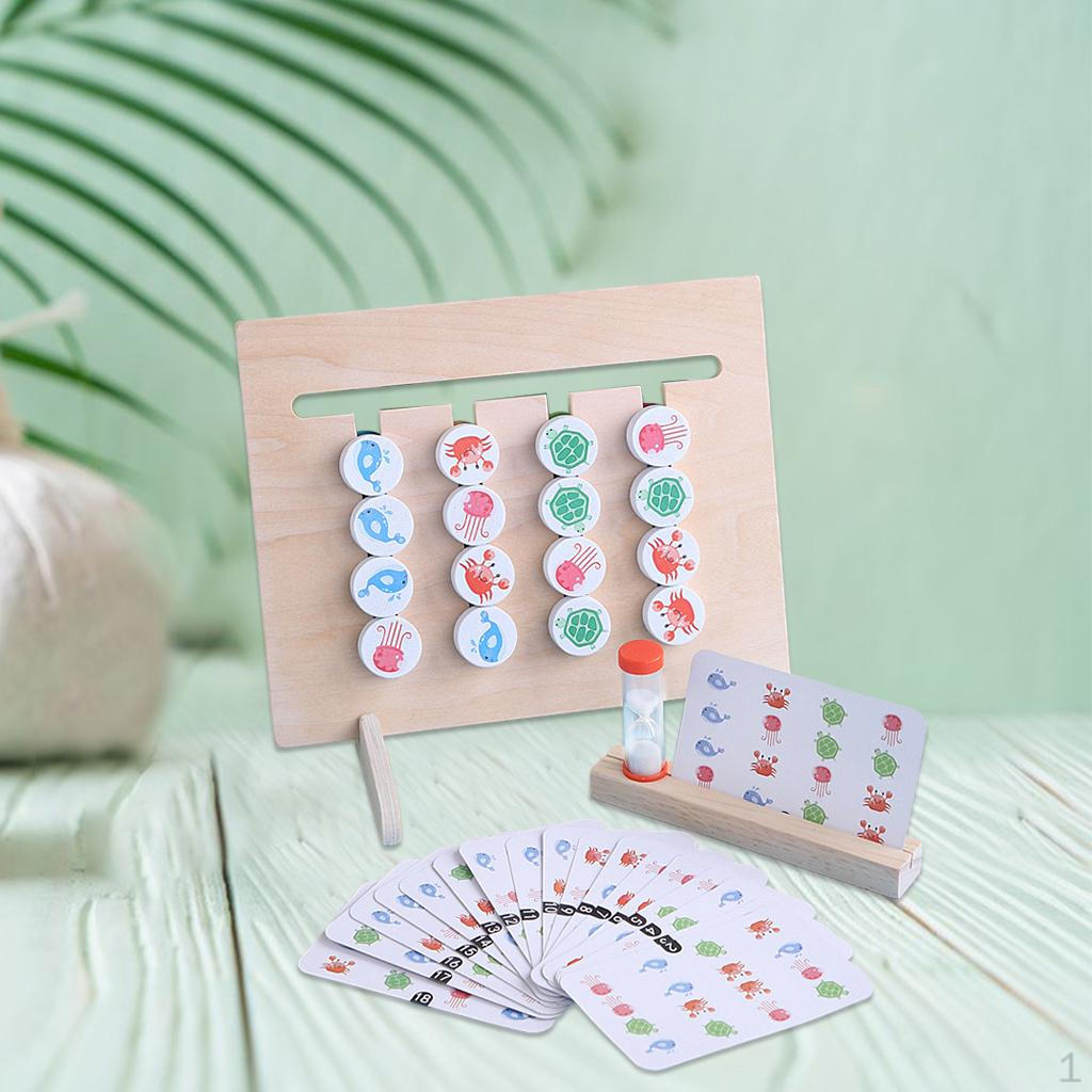 - HOW TO PLAY: Your baby sort and slid these cartoon pattern pegs according to the cards that we provide, while at the same time the sandglass will count time. Baby need to finish the task in specific time. Very challengeable, very fun.