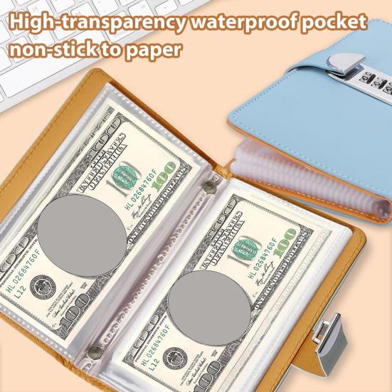 This accounting book Challenge is designed for portability and convenience, featuring a transparent inner volume with 50 pages and 100 card slots (both sides usable). Crafted from high-quality, soft, reliable, and waterproof leather material, it effectively protects your business cards, bills, and cash.