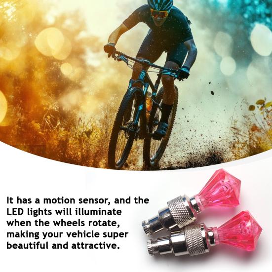 Perfect for road bikes, mountain bikes, motorcycles, and cars, these valve cap lights combine functionality with eye-catching design to keep you safe and stylish on every ride.