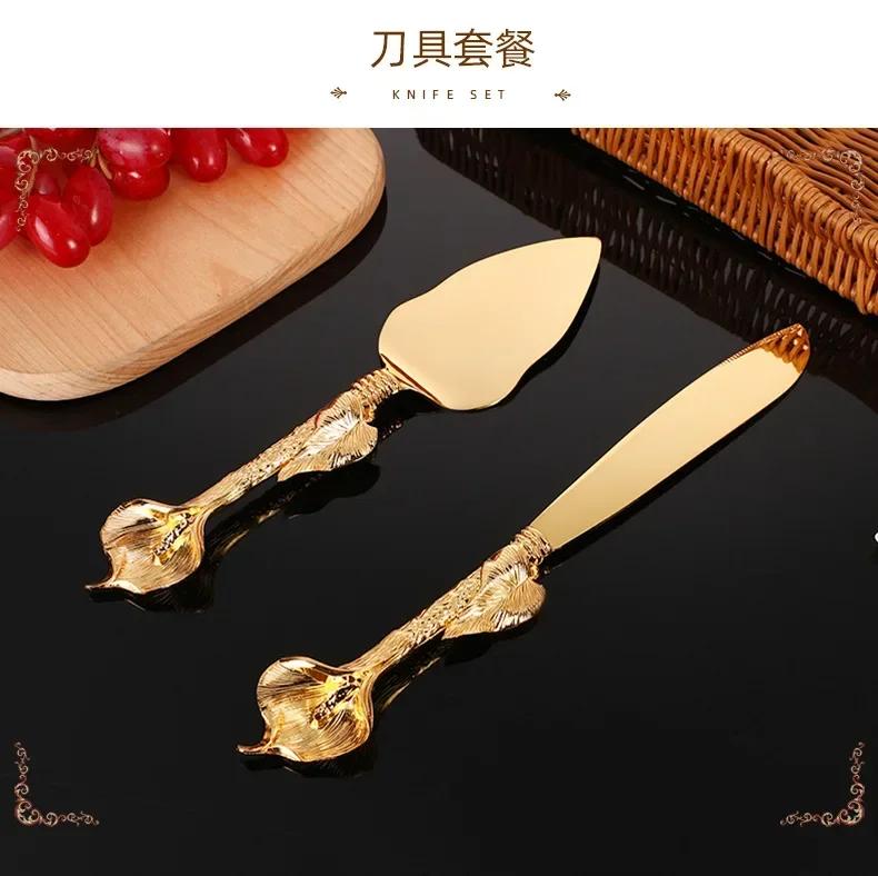 2pcs Zinc Alloy Spatula Set Wedding Celebration Birthday Cake Tableware Creative Design Leaf Handle Tableware