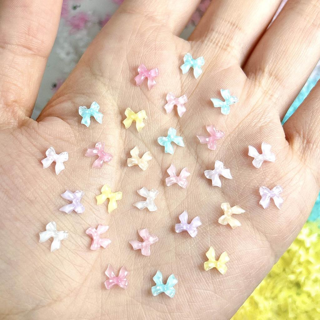 Mini Small Bow Nail Art Accessories Internet Celebrity Ice Transparent Resin 3D Bowknot Beautiful Girl Nail Decoration
