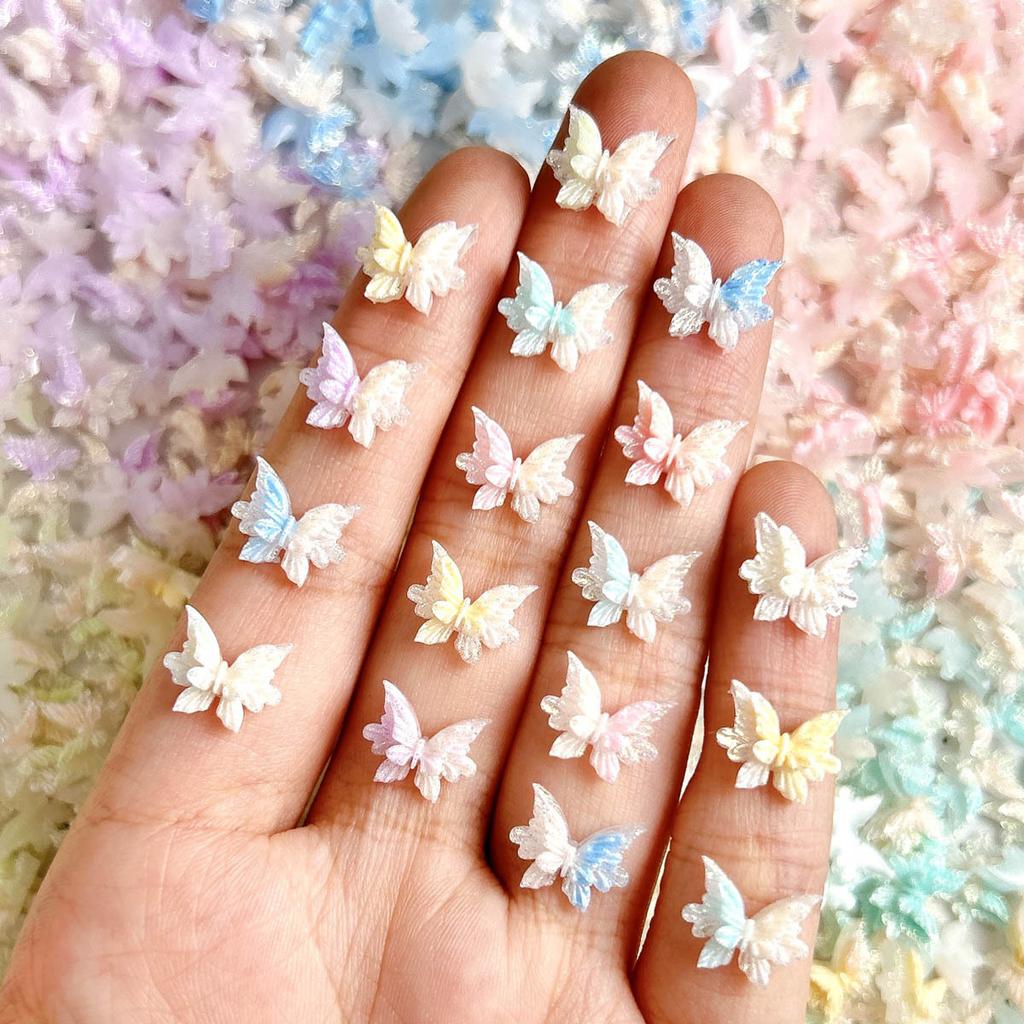 New Resin Luminous 3D Double Layer Embossed Butterfly Nail Art Decorations DIY Handmade Wearable Nail Earrings Accessories Wholesale