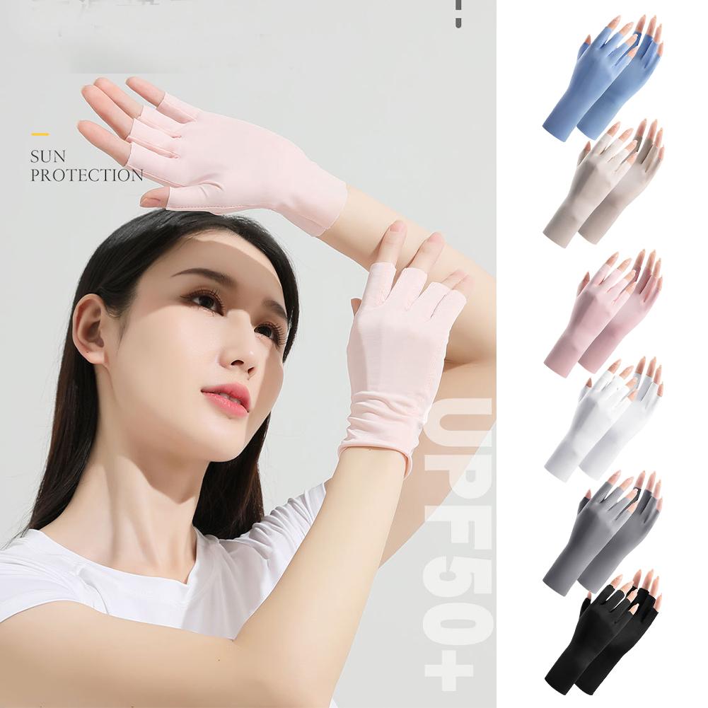 1PAIR Women Summer Sunscreen Gloves Ice Silk Half-finger Gloves Fashion Elegant UV-resistant Breathable Multicolor Driving Glove