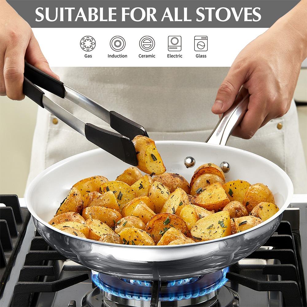 CSK 8/12 Inch Nonstick Frying Pan with Lid, Kitchen Cookware Frying Pan Nonstick, Non Toxic Ceramic Pans Ceramic Coating