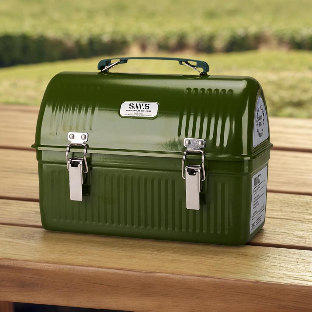 Vintage Metal Lunchbox with Handle and Latch Picnic Box 9.5L Storage Boxes Stores Food Drinks Water Bottle