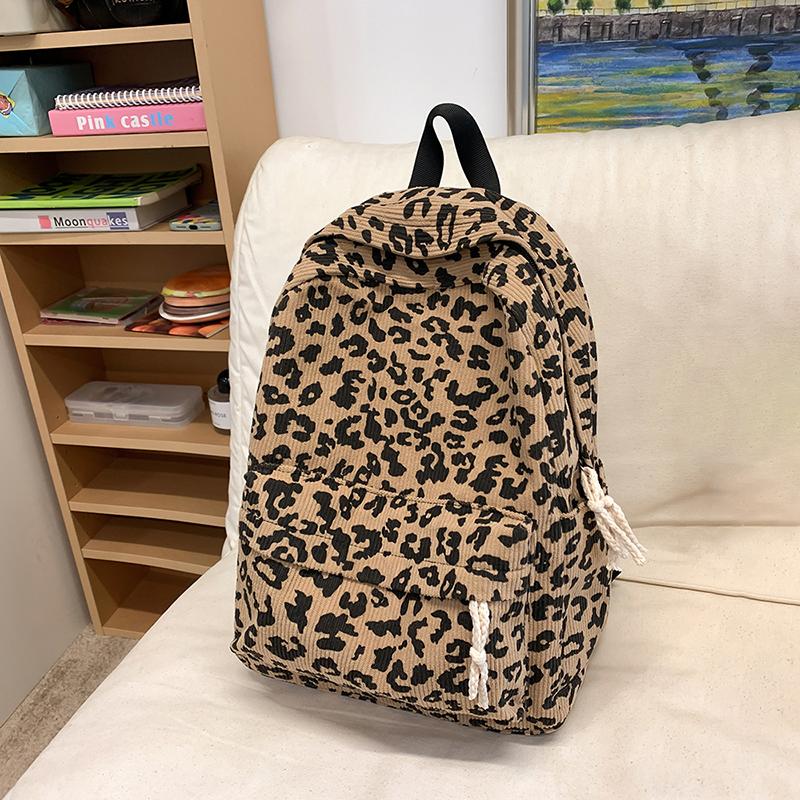 Corduroy Leopard Backpack Teenagers School Bag Large Capacity Fashion Students Bookbag Stylish Shoulder Backpack Travel Rucksack