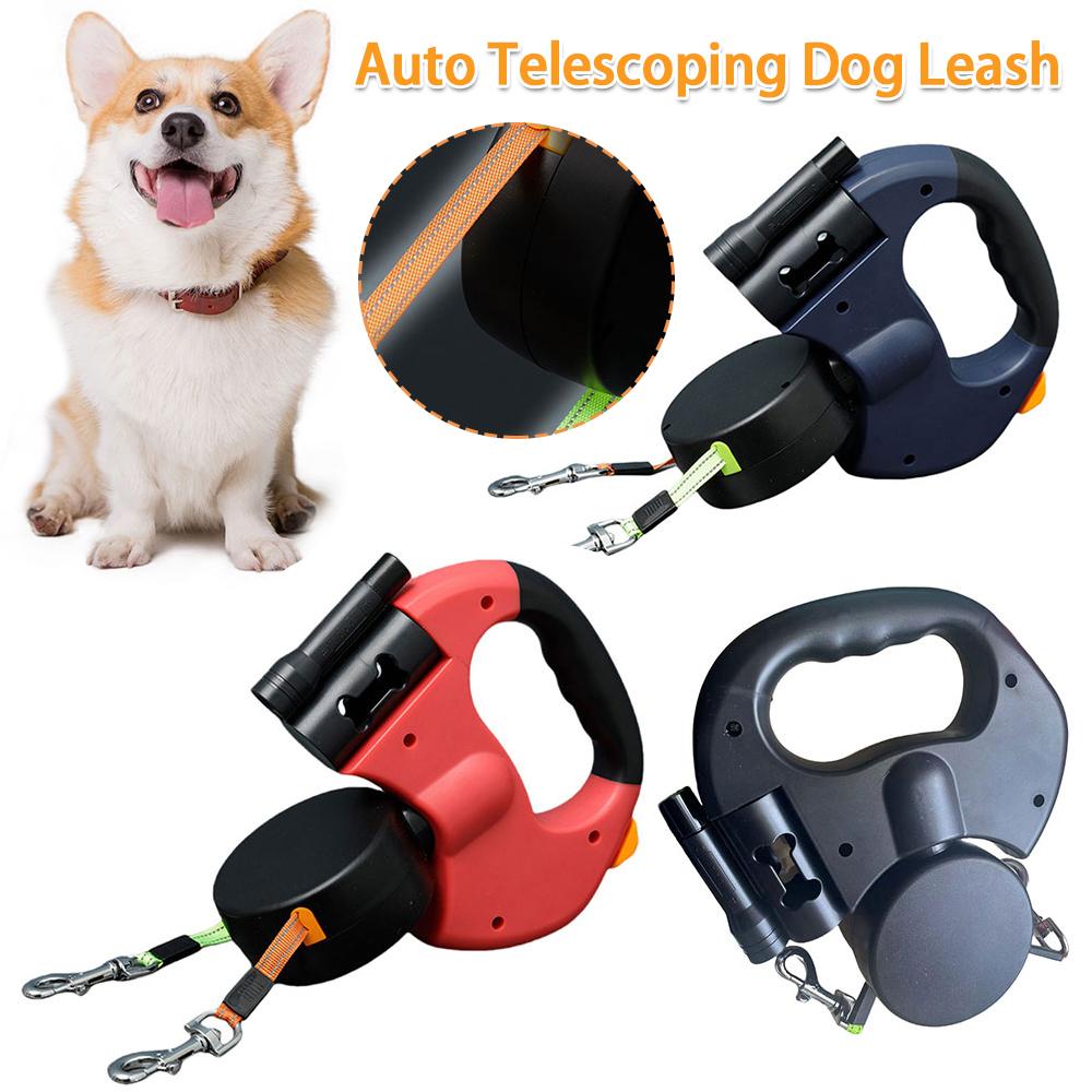 Double Headed Dog Leash Traction Rope 360 Degree Swivel Dog Walking Leash with LED Light Retractable Dog Leash Pet Supplies