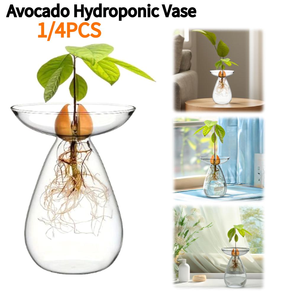 1/4PCS Avocado Hydroponic Vase Transparent Glass Avocado Tree Flower Vase Glass Planter Gardening Lovers Home Decor