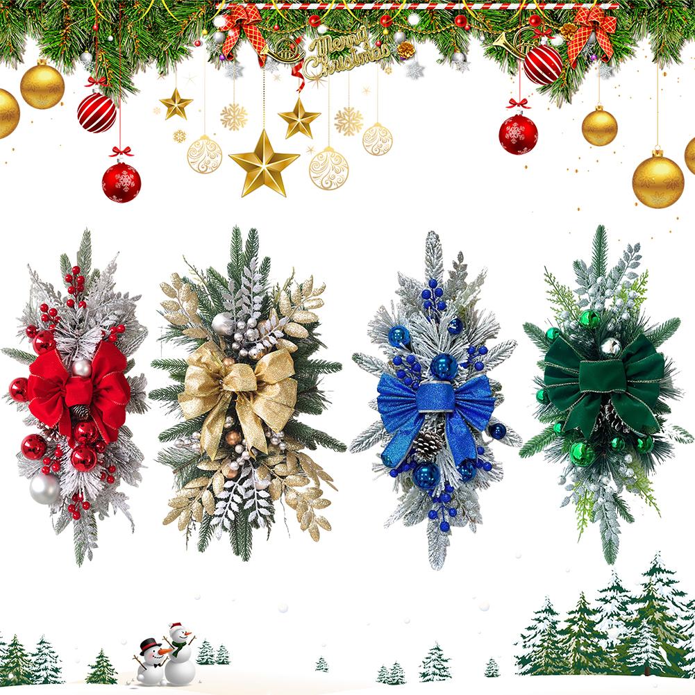 Christmas Stairway Swag Trim Artificial Staircase Garland Bowknot Garland Pendant for Home Decoration