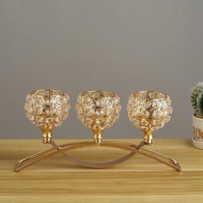 Kristal Mumluk 3 Kollu Şamdan Düğün Masa Süsleme Altın