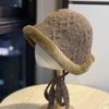 New Autumn and Winter Knitted Strap Fur Edged Basin Hat Foldable Outdoor Warm and Versatile Fisherman Hat for Women with Small Face