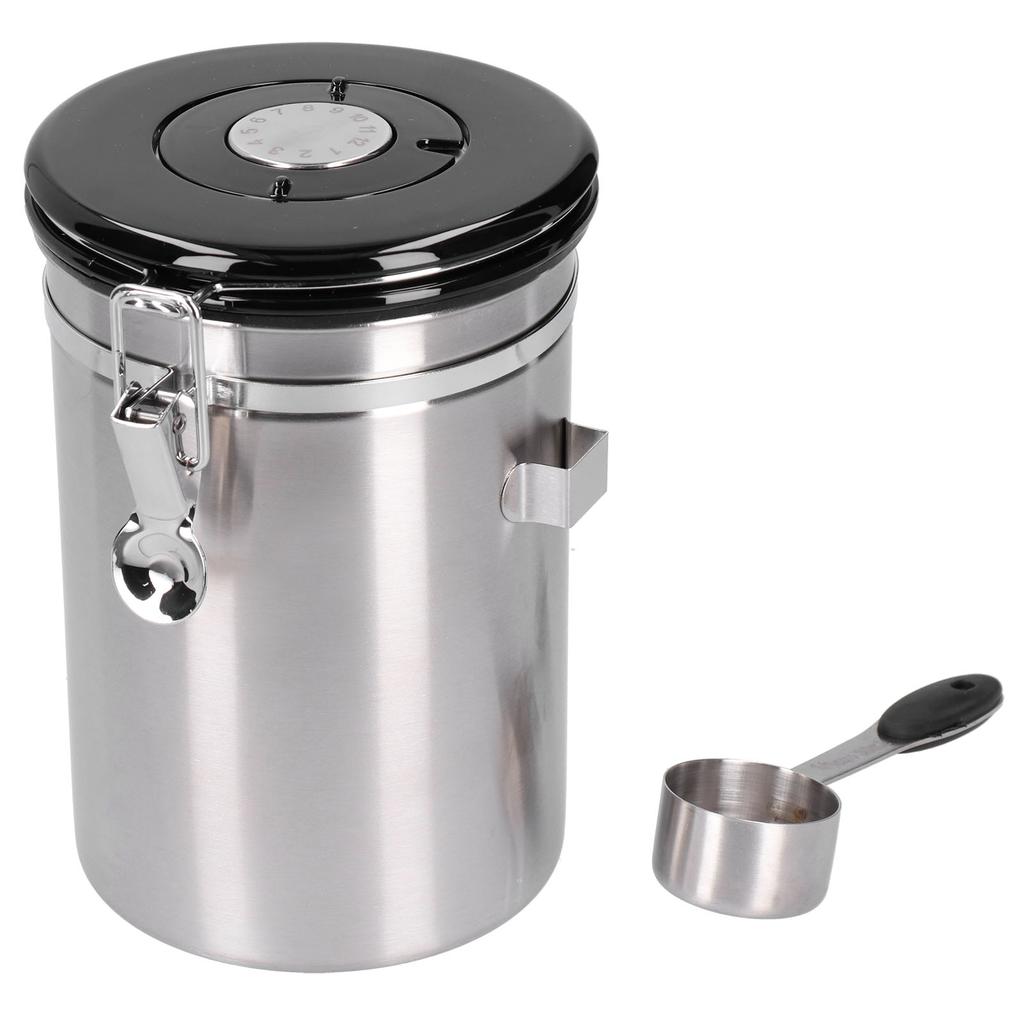 Coffee Bean Container with Exhaust Valve Tea Leaf Storage Canister for Kitchen Use(Silver Spoon 1.8L (Filled 750g Coffee Bean))
