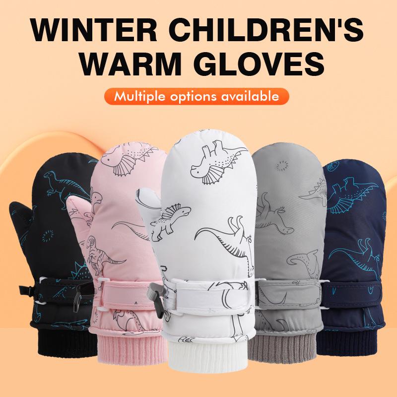 Quick-Drying Waterproof Kids' Ski Gloves with Cartoon Print - Thickened, Plus Velvet for Autumn and Winter