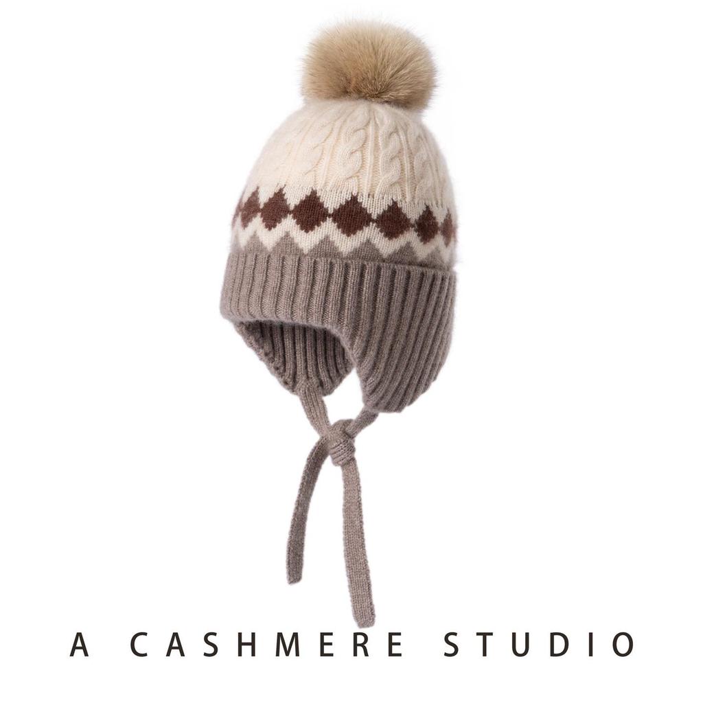 Unisex Children's Cashmere Cable Knit Pom-Pom Turban Ear Warmer Hat