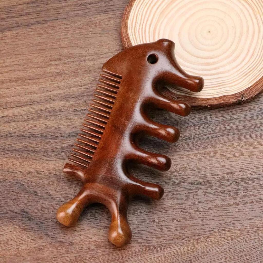 Small Fish Sandalwood Meridian Massage Comb for Women's Head Therapy – Five-Tooth, Anti-Static, Thickened Wood Design