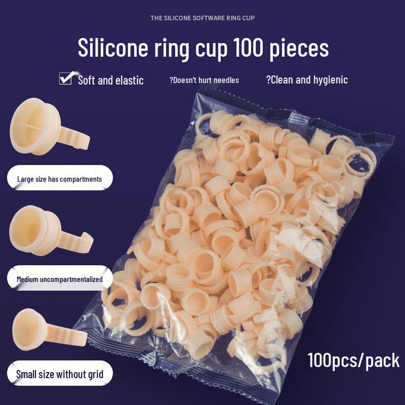 Semi-Permanent Makeup Silicone Pigment Rings, Disposable Finger Cups for Eyebrow & Lip Applications, 100 pcs.