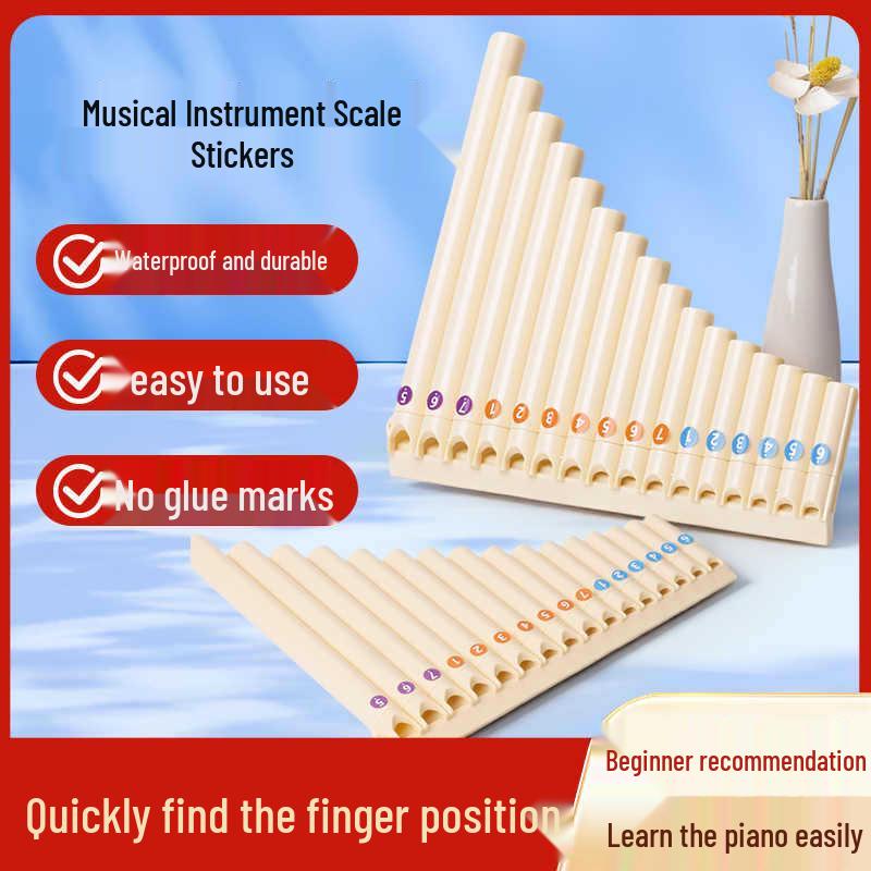 18/16 Tube Pan Flute Scale and Note Stickers - C Key Universal Recorder Finger Position Labels