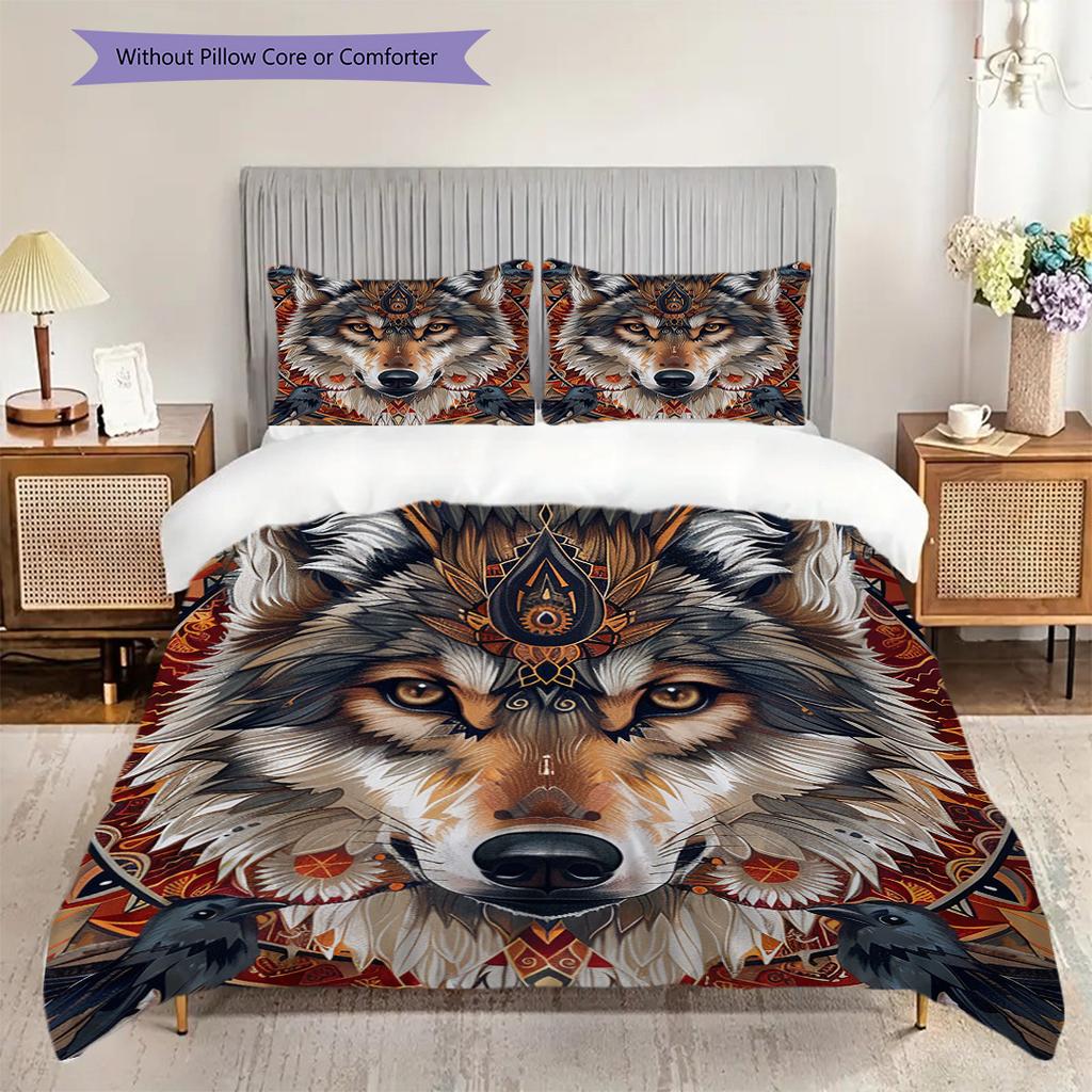 Primitive Wolf Pattern Bedding Quilt Set Quilt Cover Pillowcase Home Decoration Birthday Gift (1 * duvet cover + 2 * pillowcase, without core)
