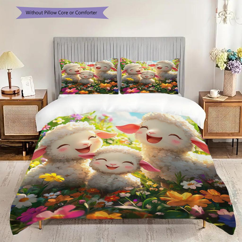 Sheep Pattern Bedding Quilt Set Quilt Cover Pillowcase Home Decoration Birthday Gift (1 * duvet cover + 2 * pillowcase, without core)