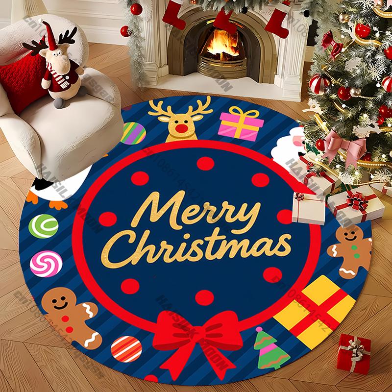 Christmas Cute Cartoon Santa Claus Wreath Printed Round Rug, Chair Carpet, Kids Playing Mat Living Room Bedroom Rug,Doormat Gift