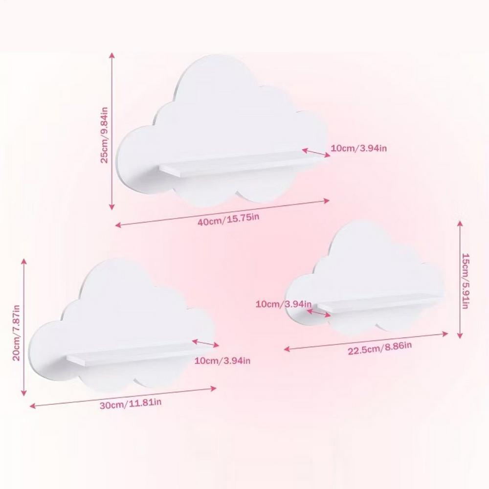 Cute Wall Shelves 3 Pieces Floating Storage Cloud-Shaped Aesthetic Room Decor Shelves For Kid's Room Nursery Kitchen Workplace